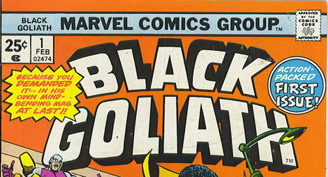 My latest score in terms of old quirky canceled comic series is Black Goliath. There were only five issues of Black Goliath published in 1976, and it differed from most of Marvel’s superhero comics in two ways: 1) It was set in Los Angeles, 2) Its protagonist was black. For the record, at this time there were two other major black superheroes in the Marvel Universe: Black Panther (who was starring in a title called Jungle Action at the time), and Luke Cage, whose title began as Luke Cage, Hero for Hire, changed to Luke Cage, Power Man, and then finally Power Man & Iron Fist when he was forced to share the bill with the white millionaire industrialist son turned cultural tourist kung-fu master).