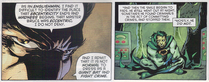 From “The Gentleman Gentleman’s Tale,” in which Alfred is the well-meaning mastermind behind Batman’s Rogue’s Gallery.