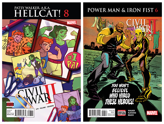 This may be a CIvil War II tie-in issue, but Wilson knows how to write a story that complies with the editorial crossover mandate, but that keeps its focus on the title’s characters and their relationships. I love this book. Alphona and Miyaski alternating art duties for flashbacks and current times works well.