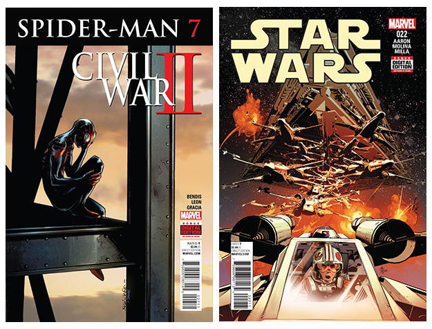 I was confused half the time while reading this comic. I had to go back and make sure I had not missed an issue, but I think my confusion was mostly borne of it having been so long since I read issue #6 and my own skewed sense of the time of events in Civil War II, which nominally crosses over with this issue. Furthermore, by bringing in a character named Bombshell, who I’d never seen or heard of before (for a brief moment I thought she might turn out to be Boom-Boom from late 80s X-Factor/New Mutants somehow made teen again) I thought I had missed something. Her overzealous handling of some pawnshop thieves just trying to steal back their own band equipment suggests that Bendis is trying to reinforce MIles’s concerns about the limits of what superheroing can achieve, and if maybe it often makes things more chaotic. Most of the issue deals with Miles being unsure about what to do about the brewing superhero “civil war” and having dreams about the Hulk (I guess this takes place before Hawkeye kills Bruce Banner?), but there is also some stuff with his mom freaking out about Miles’s secret and her run-in with Jessica Jones. The art is decent (despite no Sara Pichelli), but between a dream sequence, the foiling of a crime that does not involve Miles, and two different scenes focused on his mom’s anxieties, he issue still somehow feels like nothing really happens. It is as if this is some interstitial portion of Civil War II with some brief tangents. At $3.99, is felt like a rip-off.