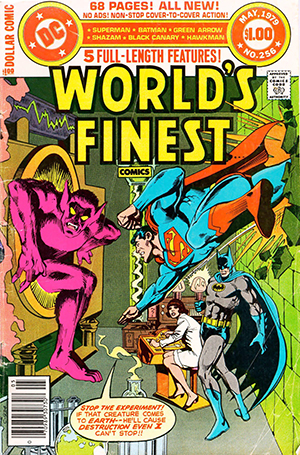 In a call-out box on the back cover of World’s Finest Comics #256 a caption asks, “Who is the arch-criminal who causes the emerald archer to battle the human dynamo!?” Sure, the technical answer is Tobias Whale, though the tropes of the superhero genre is also an acceptable answer, but if the question being asked were why is their fight framed as it is, the answer is white supremacy in the form of clueless liberality.