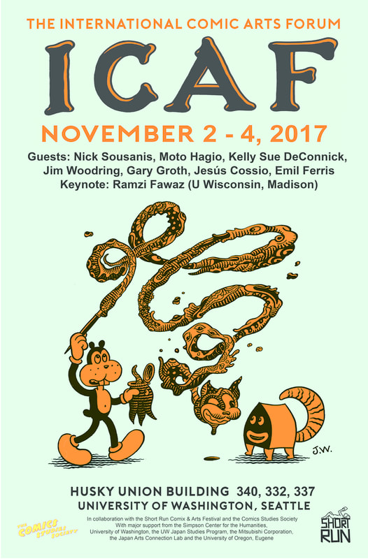From November 2nd to the 5th of 2017 I was in Seattle, Washington attending the International Comics Art Forum conference (ICAF) on the campus of the University of Washington. Despite having been established in 1995, and my having entered academia and working with comics in a scholarly form since about 2007, April of last year was my first time at the conference. This year, however, instead of attending as a presenter, I was there as a representative of the conference’s Executive Committee and helped organize its events. I serve as the committee’s Promotions Coordinator, which mostly means that in addition to the work we all share developing and running the conference, I am responsible for maintaining the ICAF website and its social media presence. I imagine that I was asked to stand for election for that position on the strength of my post here on The Middle Spaces providing an overview of the 2016 conference, and my frequent contributions to comics scholar social media outlets, especially Twitter.