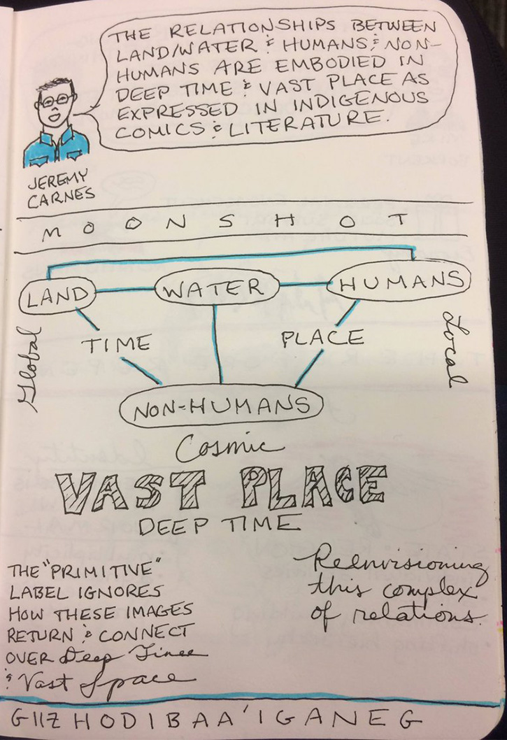 - “Giizhodibaa’iganeg: Indigenous Land/Water Lifeways in Comics Form.” Jeremy Carnes, University of Wisconsin-Milwaukee