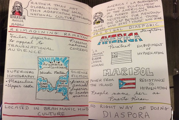 When I introduced Nicole Pizarro, I had to hold back from yelling out “¡WEPA!” when I read her bio, because I feel a great love for my fellow Puerto Ricans, especially when they are making their way through graduate school and have career aims in academia. I know how hard it can be. Nicole’s presentation took a look at Puerto Rican identity in two superhero figures, and examined how their stories and positions provide ways to think about the relationship between diaspora and homeland, and how the comics work to mend that gap. My favorite part of this presentation was when she said, “There is no right way to diaspora.” I love the notion of “diaspora” as a verb. While I gave up on America by Gabby Rivera by the third issue or so, Nicole’s presentation made me anxious to try La Borinqueña.