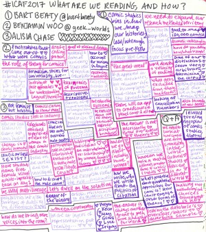 CSS was born at an ICAF conference, but this year marked the end of the collaboration between the comics studies professional organization and ICAF (CSS will be holding their own conference from now on—the first one being in August). Hatfield’s comments acknowledged the role ICAF had in making the establishment and growth of CSS possible, and I imagine that, comics studies being as small a field as it is, there will continue to be a lot of overlap between the two organizations and conferences.