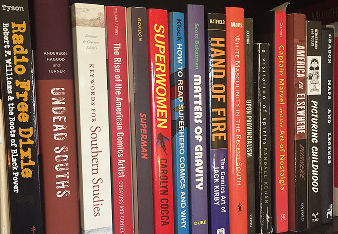 BC: I do get to teach comics pretty regularly. I’ve offered a “Comics and the South” graduate seminar twice now; I’ve taught a number of upper-division English electives on topics like “Comics of the 1980s” and “Contemporary American Comics and Graphic Novels” and “Superhero Narratives,” and I’ve also taught an intro-to-comics course on the junior level as well. I feel very fortunate to be at an institution where teaching comics and comics scholarship has been valued—everyone has been supportive of the work that I’ve done in that area. It helps that those classes always fill up!