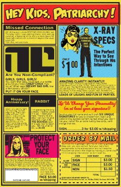 The advertisements that appear throughout the story are invested in women losing weight and ensuring that their (male) partners are satisfied. Every issue of Bitch Planet ends with a page of advertisements. Aesthetically, the ads are reminiscent of those in magazines from the early 1900’s. In Bitch Planet the ads are arguably geared towards women, although all the advertisement pages from issues 1 through 5 of BP have a header that reads “Hey kids, patriarchy!” which suggests a cynical nod to the comic-reading audience. Most importantly, however, is that closer inspection of these ads shows that they rhetorically trace the narrative in the story. As the story progresses, the messages found in the ads become less about compliance and more about revolt.