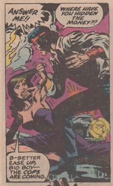 What is interesting here is how Gerber and Skrenes are pushing at what is acceptable for a superhero to do and remain a hero in the context of the genre’s ideological underpinnings. Sure, soon after this time, plenty of anti-heroes grow in popularity, but even the Punisher (who first appeared in the pages of Amazing Spider-Man a few years before this) maintains an ideological framework in line with the narrow and Manichean view of crime through which superheroes traditionally operate and that is leveraged to justify wanton violence and violating rights. The caped man, however, is cheating to raise money and earlier was willing to not get involved in fighting supercrooks because he didn’t see the point. Omega the Unknown may not be very likeable, but I do like that he challenges the accepted notions of superheroes in a way that is not merely pursuing the coolness of the rebel badass pose like a Wolverine or Ghost Rider but much more fundamentally because he maintains the trappings of the traditional Superman-like superhero while remaining inscrutable.