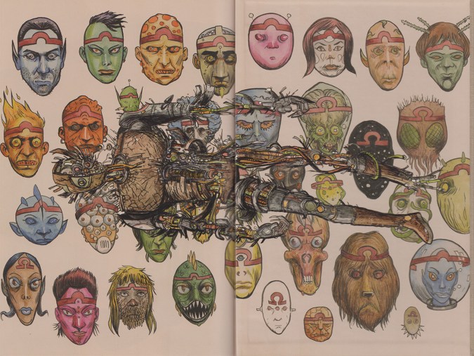 In preparing for this final installment of Alpha & Omega I went back and re-read all the issues of both series. For the 2007-08 re-imagining I took the opportunity to read them in the collected hardcover edition, which is quite lovely. Farel Dalrymple contributed a bunch of art for inside back covers. The collection also clarifies things the individual issues did not in terms of the production of the comic. For example, it credits Gary Panter for the art for the Omega-drawn comic in issue #7 and colorist Paul Hornschemeier for the art for The Mink comic featured in issue #6.