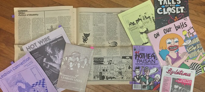 MG: Good question. Various reasons. Especially with more ephemeral objects, the location where you found it can be part of the meaning of it. I haven’t fully cataloged them yet, but a number of the grassroots periodicals I’ve gotten are from the Lesbian Herstory Archives when they’re getting rid of duplicates. So, there’s a history of connection and community that’s part of that. Also, a friend of mine, Maggie Rehm, sent me a HUGE collection of issues of Lesbian Connection from the 1990s-2000s that she and her partner owned. As I’ve been flipping through those, I’ve noticed some places where they made notes or circled items.