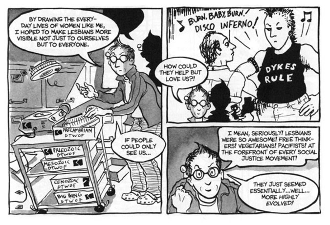 MG: To be fair, though, also, Bechdel is huge! Dykes to Watch Out For was EVERYWHERE.