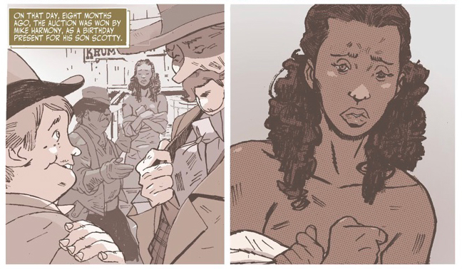 Broomhilda on the auction block (from Django Unchained #3 [June 2013] – Art by Denys Cowan & John Floyd)
