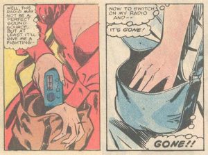 Alison Blair’s portable radio is an important tool for her (from Dazzler #12 [1982] and Dazzler #24 [1983])
