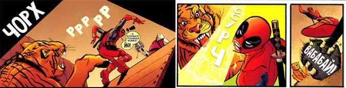The center’s mission to “nationalize” Russian comics sound effects, with its echoes of Soviet-era practices to “bring the peoples together,” was met with some approbation by the Vinogradov institute – but widely ridiculed by the Russian comics industry and fans, who uploaded numerous mocking memes. These replaced the sound effects in various US comics (including Deadpool) with the proposed variants “galdyrdyms,” “chorkh” and “vababai,” to cutting comic effect. Online comments were no less sardonic, such as one user of LiveJournal, which is still popular in Russia, who posted: “Vababai, Kapiton! I almost duberdyms from my chair. Now I’m afraid to ssurchat’ tea.” Artyem Gabrielanov, of the mainstream publisher Bubble Comics, drily opined: “Onomatopoeic sound effects and interjections can’t be patriotic or unpatriotic. You won’t be taken seriously if you talk about using the exclamation ‘vababai’ instead of ‘vau’” (Korobkova). In short, the campaign proved little more than a laughingstock.
