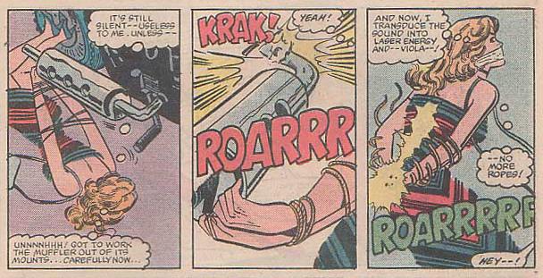 Alison Blair’s portable radio is an important tool for her (from Dazzler #12 [1982] and Dazzler #24 [1983])