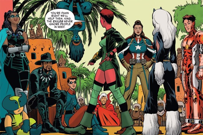 Ahmed and Rodríguez’s Exiles, exemplified here by issues #9 and #10, makes plain the influence of fifty years of Marvel comics and One Thousand and One Nights as genetic material. Their characters and the stories that they tell—adaptations after Hutcheon—might be familiar to old readers, but they offer something new and different to prospective readers. Changes made by the creators occur randomly within the context of the story itself—not unlike the mutations assigned to the X-Men by Lee and Kirby and so many other creators since 1963. These narrative mutations, from which my theory of mutation takes its name, result in mutants: texts that demonstrate the ways in which sequential narrative might still evolve. Comics like Exiles have reimagined superheroes as something other than predominantly white, cisgender men privileged with great power and burdened with great responsibility. They acknowledge that history and have provided readers with the kind of repetition that has been a staple of superhero comics since the Golden Age, yet they’ve introduced as much, if not more, change. Ahmed and Rodríguez’s Exiles are a team predominantly made up of women, led by a woman of color. Although the series ended after only 12 issues, the characters that they mutated belong to the Marvel multiverse as much as Jean Gray, Bobby Drake, Scott Summers, Warren Worthington III, or Hank McCoy. They might even appear alongside these characters (or their own mutations) someday. Narrative mutation—changes made to sequential narrative—resulting in mutants—comics and characters that are new and different—allow us to imagine where the superhero genre might go: that we might see more people of marginalized identities with power, and that their stories might be told by people like them.