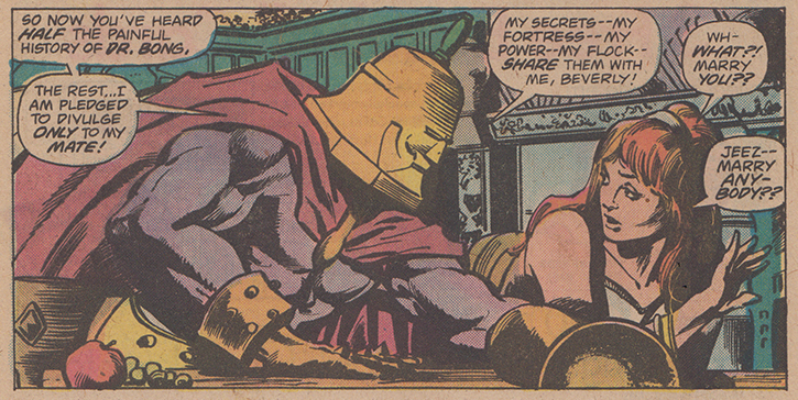 Dr. Bong is so confident in his superiority he feels Beverly should be honored to marry him (anyway, he insists). [from Howard the Duck #18]