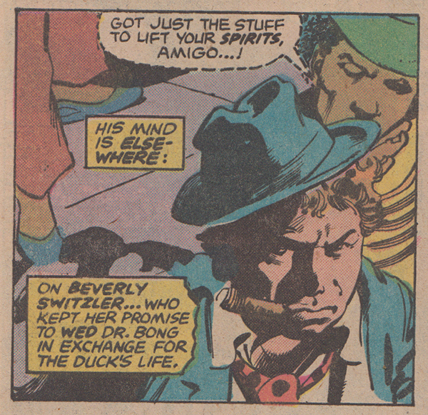 That said, with this consideration in mind, Howard the Duck comics are much more interesting to me as an example of the problematic outlooks written into comics by white dudes in the 70s (and beyond) and the popular response to it, rather than in terms of the stories themselves. More specifically, in the four issues I am examining here today, the figure of Dr. Bong as a facet of Gerber’s life and psyche makes a lot of sense.