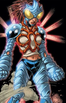 Araña in her full exoskeleton after calling upon the power of the Hunter. [from Amazing Fantasy vol. 2, #6 (January 2005)]