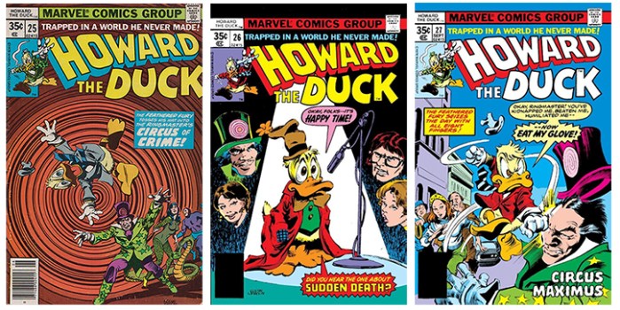 The three issues I am writing about today are the final arc of Howard the Duck written by Steve Gerber. Yes, after a gap of one issue written by Marv Wolfman, Gerber is credited as co-writer for an issue (#29), but by then he was no longer a Marvel employee, contract or otherwise. Howard the Duck #25 through #27 really mark the end of his time on the title that by most standards won him his reputation as a comic book writer.