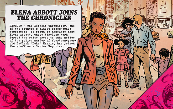 Elena is announced as a senior reporter for the Detroit Chronicler, one of the country’s oldest Black-owned newspapers. From Abbott #5 (May 2018).