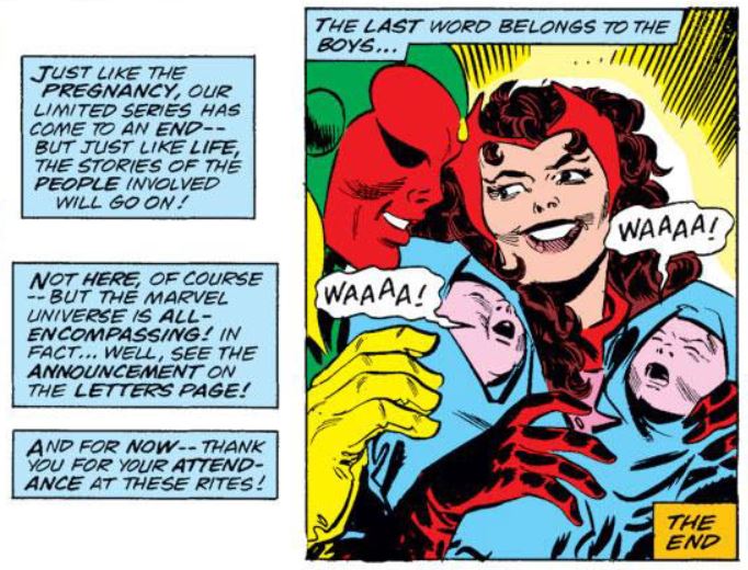 Wanda becomes pregnant, The Vision and the Scarlet Witch vol. 2, #3 (December 1985) [Click to enlarge]