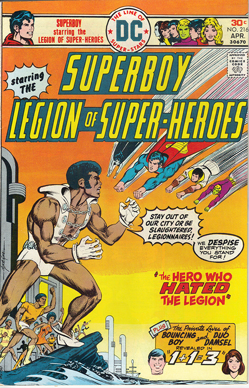 A past’s vision of the future can teach us something about its present, and in the case of mainstream superhero comic books, that vision provides a lens for examining how their white-dominated storyworlds imagine the trajectory of racial progress in society. Furthermore, this future-vision yields insight into how these comics’ predominantly white creators and editors’ well-intentioned, but nevertheless limited vision, recycles equivocating ideas about race. DC Comics’ Superboy, Starring the Legion of Superheroes #216 (April 1976) is exemplary of this racial trajectory, enlightening readers not only on the state of race relations in an idealized 30th century of the DC Universe, but in one issue it more or less captures the problematic arc of many (if not all) black superheroes of comic book worlds. I will examine the issue that introduced Tyroc in this post, along with a couple of his appearances (by the same creative team) that followed. In next week’s second part, I will be looking at the end of Tyroc’s brief stint in the Legion, examining an even clearer example of how these origins color the story involving the character and how even trying to address those problems often compounds them.
