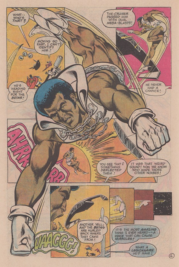 It should be noted that the question above regarding why the Legion neglected Marzal in its time of need is never addressed. The story takes it as given that the reader will not question why Marzal has been ignored. As I have often cited, back in 2011 Marvel editor Tom Brevoort, declared that “99% of all superheroes are white” in order to explain editorial choices regarding diversity (and lack thereof) in superhero teams rosters, mind-bogglingly disconnecting the preponderance of white characters in the Marvel storyworld from the choices of the people who make comics. It seems as if DC editorial of 1976 was counting on a similar disconnection from its readers.