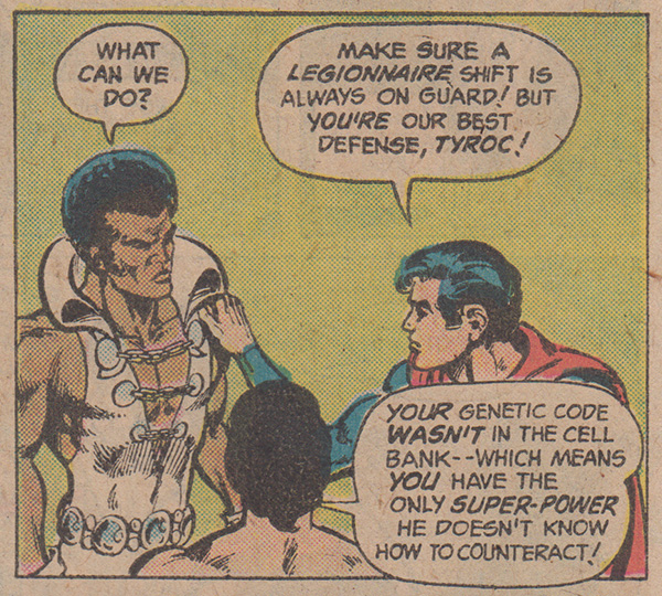Tyroc’s previous exclusion from the Legion is painted as a positive thing, as his genes were not among those collected.