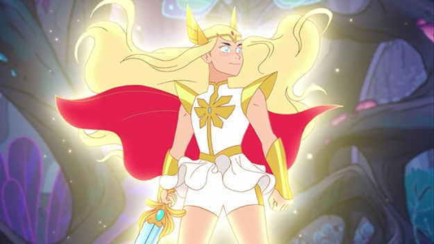 Adora steps onto the battlefield in her new She-Ra form, the fail-safe now glowing in her chest. “Heart: Part 2,” She-Ra and the Princesses of Power (Netflix: May 15, 2020).