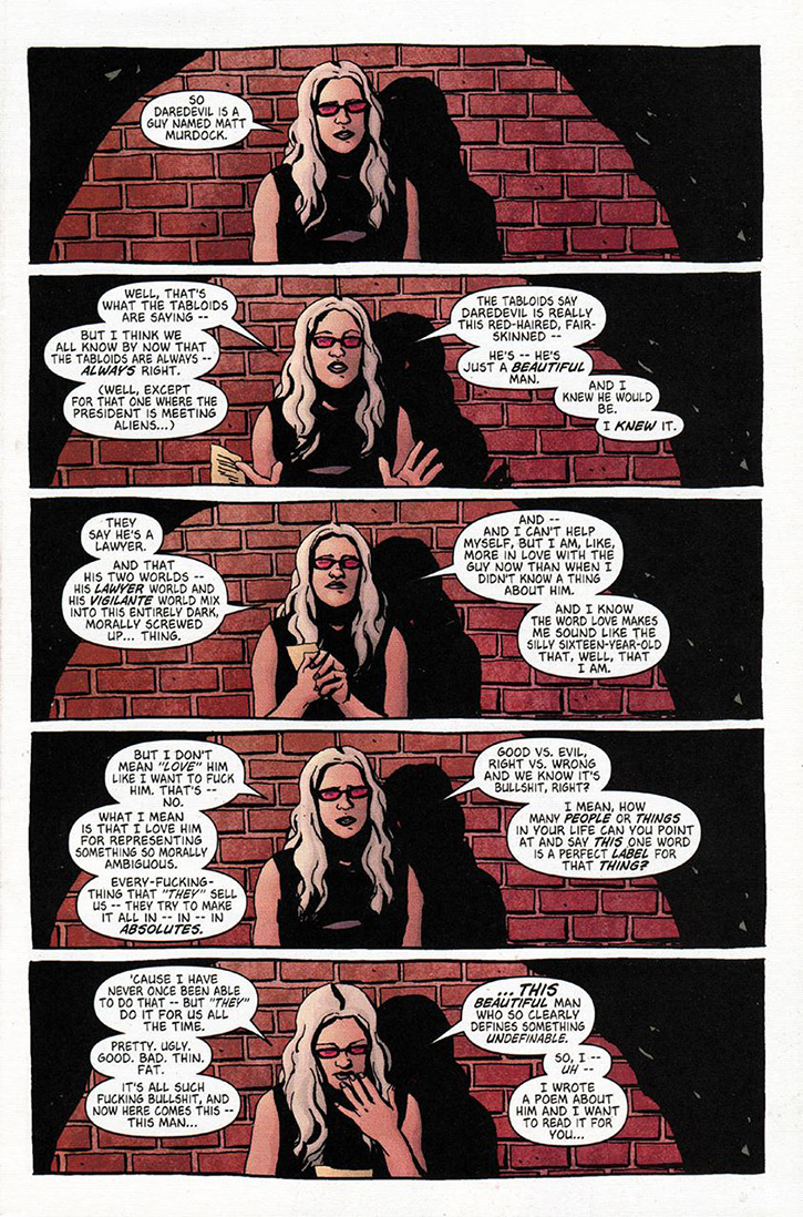 [from Alias #14 (December 2002)- art by Michael Gaydos, Matt Hollingsworth. letters by Richard Starkings. words by Brian Michael Bendis] [click to enlarge]