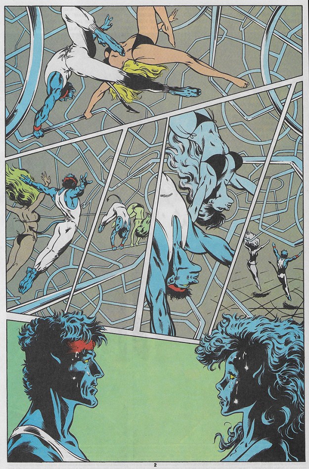Nightcrawler and Meggan share an erotic and transformative workout in Excalibur #43 (November 1991). art by Alan Davis, Mark Farmer, and Glynis Oliver.