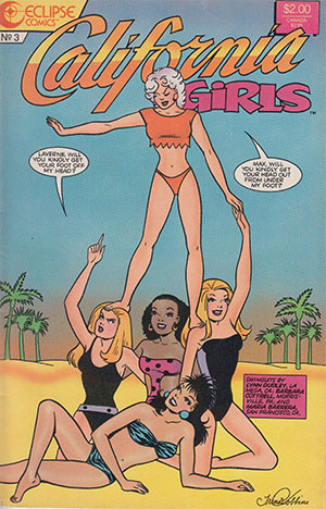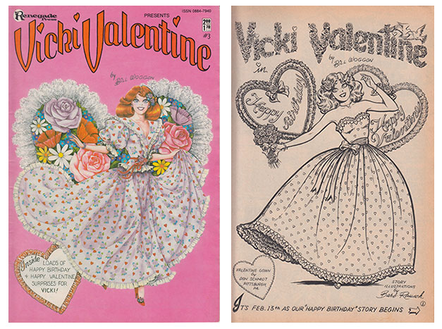 The cover and first page of Bill Woggon and Barb Rausch’s Vicki Valentine #3 (Renegade Press, January 1986).