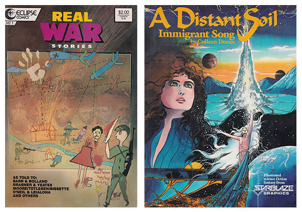 Bill Sienkiewicz’s cover for Real War Stories #1 (Eclipse Comics, 1987) and Colleen Doran’s A Distant Soil: Immigrant Song (Donning/Starblaze, 1987).