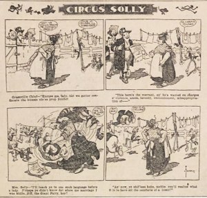 Like a prototype of Bugs Bunny, Circus Solly dresses in drag to escape his pursuers. (October 16th, 1910, The Democrat Chronicle) [Click to See Full Strip]