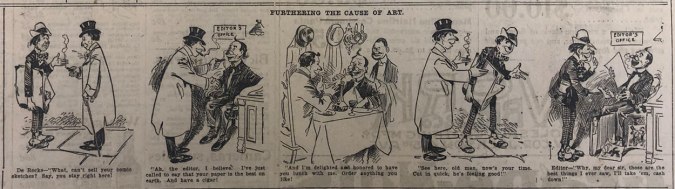 In his only known autobiographical strip, Frink employs a streetwise friend to butter up a newspaper editor. (5/17/1901, Chicago Daily News)