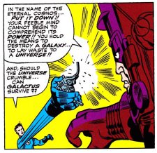 Reed Richards threatens Galactus with the Ultimate Nullifier way back in its first appearance in Fantastic Four vol 1, #50 (by Jack Kirby & Stan Lee)